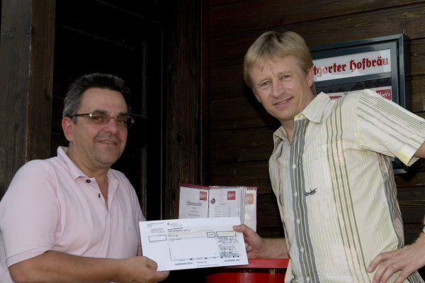 unterstützen. Jürgen Reinhard bei der Scheckübergabe mit dem 2. Vorstand Urs Fingberg |