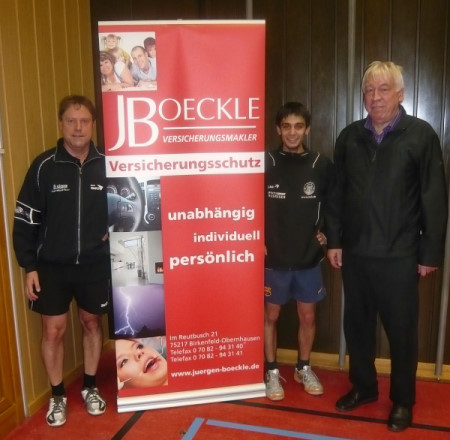 Wie seit geraumer Zeit darf sich der TTC auch dieses Jahr wieder über eine großzügige Spende des Versicherungsbüros Jürgen Boeckle freuen. Zudem wurde zum samstäglichen Heimspiel der 1. Herrenmannschaft ein neues Werbebanner mit modernisiertem Firmenauftritt zur Verfügung gestellt und eingeweiht. Nach dem nicht unbedingt erwarteten Punktgewinn gegen die favorisierte Vertretung aus Unterreichenbach/Dennjächt wurde scherzhaft die Aussage getätigt, dass wir uns wohl auch gegen den Abstieg versichert hätten. Die Verantwortlichen des TTC betonen, dass die erhaltenen finanziellen Mittel weiterhin ausschließlich gezielt für den Jugendbereich verwendet werden. An dieser Stelle nochmals ein recht herzliches Dankeschön an das Versicherungsbüro Boeckle für das jahrelange Engagement beim TTC Birkenfeld.