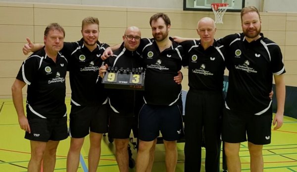 Die erfolgreiche "Zweite" von links nach rechts: Frank Ehmer, Florian Atlas, Daniel Caroppo, Ralf Vollmar, Dieter Herrigel, Tim Herrigel Zum Abschluss der Vorrunde bestätigte unsere "Zweite" am vergangen Samstag ihre starke Form. Mit einem ungefährdeten 9:3-Sieg gegen Oberhaugstett 2 landet unsere Landesliga-Reserve mit 14:8 Punkten auf dem vierten Tabellenplatz der Bezirksliga Schwarzwald. Die Begegnung selbst ist schnell erzählt. Nach dem Gewinn aller drei Doppel und klaren Siegen von Dieter Herrigel, Florian Atlas und Ralf Vollmar stand es schnell 6:0, ehe die Neubulacher mit unerwarteten Erfolgen über Frank Ehmer und Daniel Caroppo nochmals etwas verkürzen konnten. Man spürte in dieser Phase, dass die Spannung etwas aus der Partie war, so dass auch Kapitän Dieter Herrigel bei seinem zweiten Einzel die letzte Konsequenz vermissen ließ und der Gegner so in einem engen Spiel zu seinem dritten Punktgewinn kam. Tim Herrigel und abermals die stark aufspielenden Florian Atlas und Ralf Vollmar machten den "Sack" aber anschließend zu. Erwähnenswert ist noch der Punktgewinn des Tages bzw. der gesamten Vorrunde durch unseren Youngster Florian. Bei eigenem Matchball konnte er den Netz- und Kantenball seines Gegners mit einem Reflex in spektakulärer "Fan Zhendong"- Manier auf den Tisch des Gegner zurück "legen". Der chinesische Tischtennis-Superstar wurde im vergangen Jahr durch einen ähnlichen Punktgewinn zum Internethit. Leider lief in der Hermann-Gross-Sporthalle keine Kamera mit, doch die Zuschauer quittierten die Aktion mit standing ovations und tosendem Applaus. |