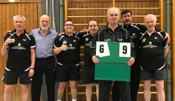 Mit einem 9:7-Heimerfolg gegen Deißlingen beenden die Herren 1 ihre Aufstiegssaison in der Landesliga. Spannung war in dem vierstündigen Match bis zum Schluss geboten, bevor das Schlussdoppel Lion/Bühler den Sieg einfuhr. Das Team steht damit zum Ende der Rückrunde auf dem drittletzten Platz, einen bzw. zwei Punkte hinter den vor ihnen platzierten Teams. Nun geht es in zwei Wochen in der Relegation um den Verbleib in der Liga. Doch zunächst kann sich die Mannschaft kurz über das Erreichte freuen. „Nach der Vorrunde mit nur vier Punkten hat Dirk uns zusammengerufen und gesagt, dass er als Ziel zum Ende der Rückrunde eine zweistellige Punktzahl ausgibt. Egal, wo wir dann in der Tabelle stehen, dann könnten wir zufrieden sein. Nun haben wir 13 Punkte und sind in der Rückrunden-Tabelle sogar Vierter!“, so der erfreute Mannschafts-Kapitän Daniel Forstner. Daniel und Matze waren es auch im mittleren Paarkreuz, die mit ihrer 8:8 bzw. 10:5 Bilanz immer wieder wichtige Punkte beisteuern konnten. Trainer Dirk stimmt zu: „Die beiden haben, wie das ganze Team, eine tolle Rückrunde gespielt. Die Vorrunde in einer neuen Liga ist immer schwer. Umso schöner, dass sich alle durch ihren Einsatz und Trainingsfleiß gesteigert haben. Die Relegation wird schwer, aber wir werden nochmal unser Bestes geben und dann schauen, was es am Ende wird!“, so Dirk, der nach seiner zweijährigen Verletzungspause ein wenig Anlaufzeit brauchte und dann in der Rückrunde mit einer 12:2 Bilanz entscheidend zu den Erfolgen des Teams beitrug. Die starke Rückrunde allgemein und insbesondere die geschlossene Mannschaftsleistung gegen Deißlingen werden dem Team mit Sicherheit Selbstvertrauen für die zwei anstehenden Relegationsspiele geben. Die Mannschaft freut sich über jede Unterstützung in der Relegation, die am 05. Mai in Freudenstadt stattfindet. |