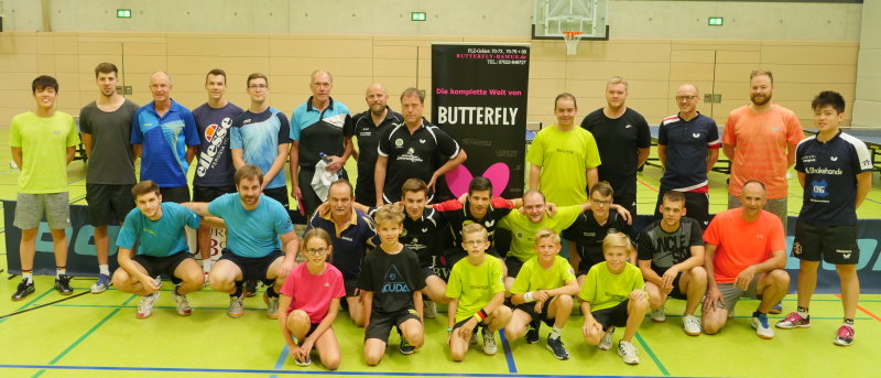 Die Teilnehmer des 1. TT-CamB mit dem Trainerteam um TTCB-Trainer Dirk Lion