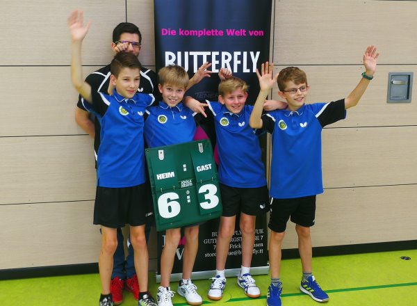 Die siegreiche Mannschaft vom vergangenen Samstag mit Betreuer und Jugendwar Oliver Sierpek Unsere zweite Jugendmannschaft konnte am letzten Spieltag gegen den Tabellenzweiten vom TSV Hirsau die Meisterschaft in der Kreisliga A Nord besiegeln. Geschenkt wurde unseren Jungs jedoch nichts, denn zu Beginn leisteten die Gäste vehement Gegenwehr. In den Doppeln punkteten Jonathan/Lenny und kurz darauf Lenny im Einzel. Er schlug den bisher ohne Satzverlust gebliebenen Banschbach glatt mit 3:0 Sätzen. Im hinteren Paarkreuz konnten wir unsere Stärke ausspielen und durch die Erfolge von Lasse und Tim mit 4:2 in Führung gehen. Nachdem Jonathan auch im zweiten Spiel seinem Gegner zum Sieg gratulieren musste, konnten Lenny und Lasse noch einmal punkten und so zum Saisonabschluss für einen verdienten 6:3-Heimsieg sorgen. „Die Entwicklung unserer Jungs ist verblüffend. Besonders im letzten Monat sind die Jungs förmlich explodiert. Vor der Saison hatte ich nicht damit gerechnet, dass wir um die Meisterschaft mitspielen können. Umso schöner, dass sich die Jungs heute für ihre guten Trainingsleistungen mit dem Meistertitel und dem damit verbundenem Aufstieg belohnt haben“, so Betreuer und Jugendleiter Oliver Sierpek zum überraschenden Meistertitel. Zur Meistersaison haben Jonathan Senst, Lenny Bischoff, Kacper Kubis sowie die zuverlässigen Ersatzspieler Lasse Imhof, Tim Nofer und Mattis Eisemann jeweils ihren Teil beigetragen. Auch in der kommenden Saison haben sich die Jungs hohe Ziele gesteckt und haben den Durchmarsch ins Visier genommen. Wenn sie weiterhin so fleißig an sich arbeiten, sollte die Chance dafür tatsächlich gegeben sein sein. Glückwunsch Jungs, dranbleiben! |