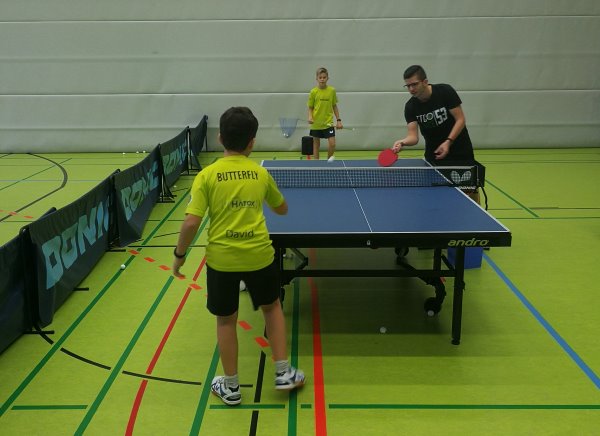 Abwehrspieler und Nachwuchstalent David am Balleimer mit Trainer Oliver Sierpek Bereits am 04. Januar startete ein Teil unserer Jugendlichen ins neue TT-Jahr. Organisiert von Jugendleiter Oliver Sierpek und geleitet durch unseren Trainer, Dirk Lion, starteten unsere Jungs, ergänzt um einige Gastspieler aus den umliegenden Vereinen, in die Rückrundenvorbereitung. Beim eintägigen Lehrgang wurden bei den Kids darauf wertgelegt, dass sie nach den Feiertagen die verloren gegangene Sicherheit zurückerlangen und fit für die Rückrunde gemacht wurden. Mit Sparringspartnern und Balleimertrainern wurde Coach Dirk unterstützt und man durfte sich erneut über ein erschöpftes, aber äußerst positives Feedback der Kids und ihrer Eltern freuen. |