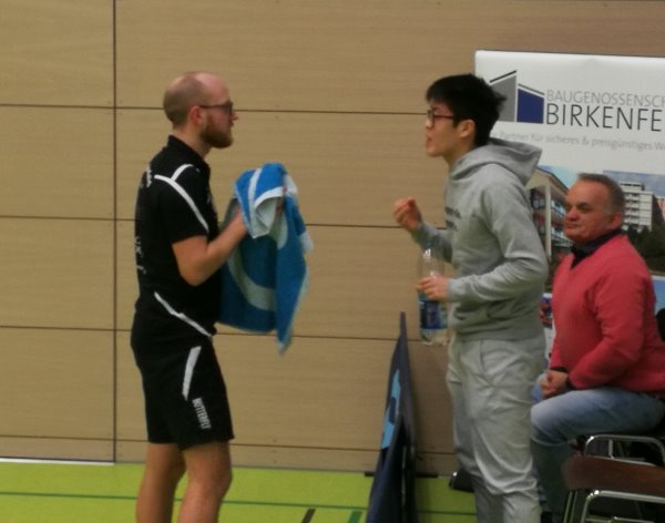 Nationalspieler Dang Qiu coacht Spitzenspieler Dirk Lion Das Spiel des „Ersten“ gegen den Tabellenführer von der SV Leonberg/Eltingen stand unter klaren Vorzeichen: Drittletzter gegen Tabellenführer. Doch vor den Augen des deutschen Nationalspielers Dang Qiu entwickelte sich ein spannendes Spiel, das die Gäste am Ende mit 5:9 für sich entscheiden konnten.