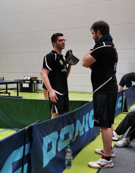 Ralf Vollmar gibt seinem Mannschaftskollegen Oliver Sierpek in der Satzpause Tipps Für unsere Jungs aus der zweiten Jugendmannschaft gab es am Wochenende eine herbe 6:0-Niederlage gegen den Tabellendritten vom VfL Stammheim. Dabei waren Tim Nofer mit David Martini im Doppel und Silas Kilian in ihren Spielen an einem Punktgewinn dran und mussten sich je erst im Entscheidungssatz geschlagen geben. Die zweite Herrenmannschaft erkämpfte sich gegen den direkten Konkurrenten von der TuS Bad Rippoldsau ein leistungsgerechtes 8:8-Unentschieden. Trotz zwischenzeitlicher 6:4-Führung muss man am Ende doch mit dem Punkt zufrieden sein, welcher jetzt auch rechnerisch den Klassenerhalt vor dem letzten Spiel gegen Ottenbronn bedeutet. Die „Fünfte“ verlor in Althengstett mit 1:9. Allein Klaus Riedlinger konnte mit seinem knappen Sieg Ergebniskorrektur betreiben. Im Spiel um die Aufstiegsrelegation der Bezirksklasse unterlag unsere „Dritte“ gegen den Konkurrenten VfL Nagold klar mit 2:9. Lediglich das hintere Paarkreuz mit Rolf Anselment und Patrick Stelzl konnten dabei punkten. Unsere Damen unterlagen den Tabellenführerinnen vom VfL Stammheim nur knapp mit 6:8. Dabei konnten alle Spielerinnen des TTC mindestens einen Punkt zum Endergebnis beisteuern und somit zufrieden, ob ihrer guten Leistungen sein. |