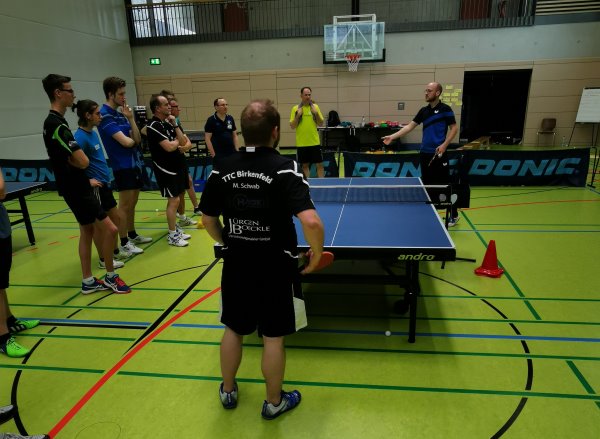 Lehrgangsleiter Dirk Lion erklärt den Teilnehmerinnen und Teilnehmern eine neue Technik am Tisch Vor kurzem fand in der Hermann-Gross-Sporthalle die StarTTer-Ausbildung im Tischtennis Bezirk Schwarzwald statt. Die StarTTer-Lizenz ist die erste Stufe der Trainerausbildung und findet an einem Wochenende statt. Die Leitung hatte unser Trainer Dirk inne, organisiert wurde der Lehrgang von unserem Jugendleiter Oliver Sierpek, der auch den Posten des Bezirkslehrwarts im Schwarzwald innehat. An zwei Tagen lernten die ca. 15 Teilnehmerinnen und Teilnehmer die Grundlagen der Trainerarbeit. Technikerwerb, Fehlerkorrektur und Trainingsplanung waren dabei nur ein Teil der behandelten Themengebiete. Die Teilnehmerinnen und Teilnehmer, darunter einige TTCB’ler, waren allesamt begeistert von der praxisnahen Ausbildung unter unserem Dirk Lion, der stets ausführlich auf Fragen und Wünsche aus dem Teilnehmerfeld einging. Auch Organisator Oliver Sierpek war mit dem Lehrgang zufrieden und freut sich auf einen Schwung neuer Trainer, die die Ausbildung der Jugend im Bezirk noch einmal ein Stück nach vorne bringen. |
