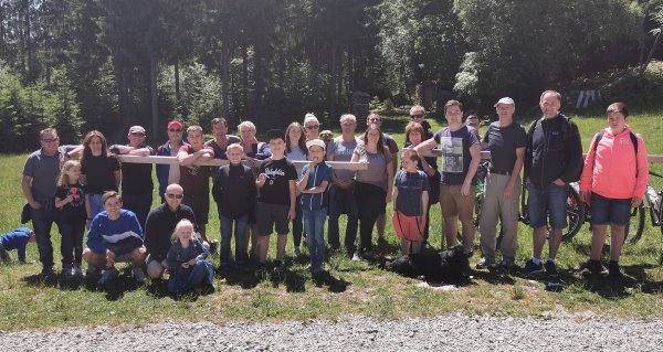 Die TTCB-Familie vor der Grünhütte Bereits am Samstag vor Pfingsten war der TTC im Schwarzwald unterwegs. Dieses Mal jedoch nicht mit dem Auto auf dem Weg zu einem Punktspiel, sondern zu Fuß, mit dem Ziel Grünhütte. Die knapp 30 TTCB’ler starteten in Kaltenbronn und wanderten vorbei am idyllischen Wildsee in Richtung Grünhütte. Dort kehrte man ein und ließ sich die berühmten Heidelbeerpfannkuchen und den leckeren Heidelbeerwein schmecken. Gut gestärkt konnte man dann einige Zeit später den Rückweg angehen und wieder nach Kaltenbronn wandern. Alle, egal ob alteingesessener TTCB’ler, Neuzugang oder Familienmitglied waren sich einig, dass es eine schöne Veranstaltung gewesen war und dass man die Wanderung im nächsten Jahr wiederholen wolle. An dieser Stelle noch einmal vielen Dank an Mathis Genthner für die gute Organisation! |