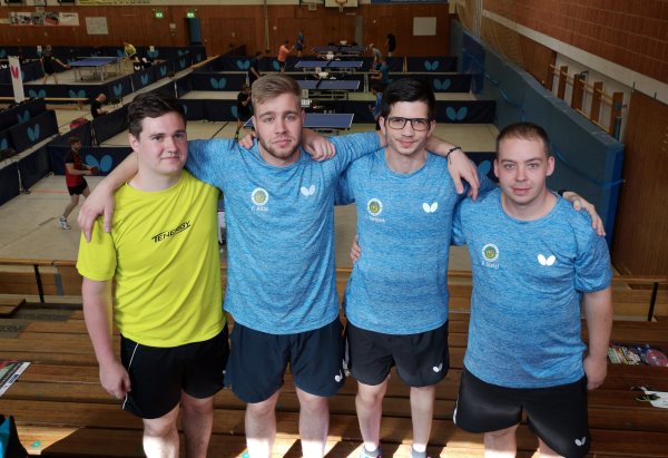 Müde Gesichter bei den Deutschen Clickball Meisterschaften in Fulda Clickball ist in den vergangenen Jahren unter den Tischtennisspielerinnen und -spielern immer beliebter geworden. Das Interessante dabei ist, dass alle Teilnehmenden einen Einheitsschläger vom Turnierveranstalter gestellt bekommen, der anstatt normaler „Tischtennis-Gummis“, auf beiden Seiten mit Sandpapier belegt ist. Das einheitliche Material und die weitestgehend fehlende Rotation in den Bällen führen dazu, dass große Niveauunterschiede im Tischtennis, im Clickball auf einmal ganz klein sein können. Und so verschlug es vier unserer Vereinsmitglieder am vergangenen Wochenende zu den Deuschen Clickball Meisterschaften ins hessische Fulda. Unsere Jungs zeigten sich von der lockeren Atmosphäre des Turniers begeistert und kamen schnell mit Clickballern aus der ganzen Republik ins Gespräch. Auch sportlich wussten die vier zu überzeugten und konnten bei ihrem ersten Turnier bereits Spiele gewinnen. Unsere vier Jungs wollen im nächsten Jahr gerne wieder an den Deutschen Clickball Meisterschaften teilnehmen und manch einer träumt sogar davon in Zukunft selbst mal ein Clickball-Turnier in Birkenfeld auszurichten. |