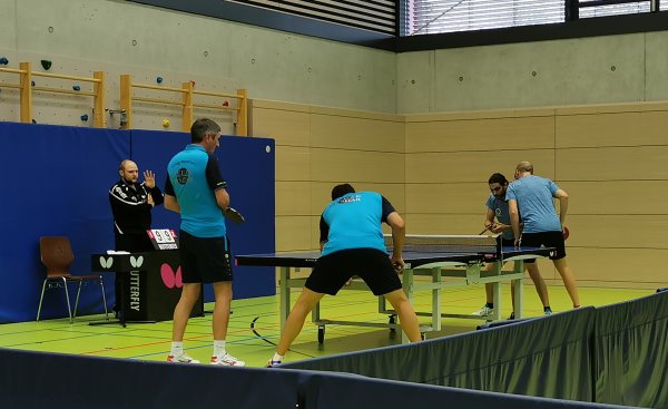 Dirk Lion und Julian Bühler bei ihrem Schlussdoppel gegen Tabellenführer Mössingen Die Rollen waren klar verteilt: Die „Erste“ als Außenseiter, auf der anderen Seite die beiden Spitzenteams aus Mössingen und Reutlingen, welche vor dem Wochenende die Plätze 1 und 2 in der Landesliga belegten. Samstagabend in Reutlingen: Das frisch aufgestiegene Reutlinger Team hat sich zur neuen Saison personell verbessert. Noch dazu bestritt Altmeister Stähle auf Position zwei sein erstes Saisonspiel. Doch die „Erste“ hielten von Beginn an gut dagegen, führten nach zwei siegreichen Doppeln zu Beginn mit 2:1. Dirk Lion hielt Stähle in einem engen Match in Schach, während Julian Bühler und Daniel Forstner trotz guter Leistung ihren Gegnern gratulieren mussten. So ging es hin und her bis zur 7:5-Führung der Reutlinger. „Da habe ich keinen Pfifferling mehr auf uns gesetzt“, erinnert sich Kapitän Daniel Forstner. Und tatsächlich: War es in der Vergangenheit oft die ersten Positionen rund um Coach Dirk Lion, die den TTCB im Rennen hielten, ist in dieser Saison auch auf das hintere Paarkreuz Verlass. Neben Mathias Schwab in der Mitte, siegte Giovanni Giorgini noch nach einem aussichtslosen 0:2, am Nebentisch gewann Youngster Florian Atlas ebenfalls. Plötzlich führte der TTCB vor dem Schlussdoppel mit 8:7. Auch dieses entwickelte seine ganz eigene Dramatik, wobei Reutlingen schnell mit 2:0 in Führung ging. Bühler/Lion fingen sich jedoch, steigerten sich in den Folgesätzen und konnten am Ende nach einer sehr fairen, hochklassigen, viereinhalb-stündigen Partie jubeln: 11:13 im Entscheidungssatz und damit: Auswärtssieg. Nur 10 Stunden später standen die Akteure dann in der heimischen Hermann-Gross-Sporthalle gegen den Tabellenführer aus Mössingen am Tisch. Auch hier konnte das Team ein wichtiges 2:1 aus den Doppeln mitnehmen. Wieder wog das Spiel hin- und her, viele hochklassige Ballwechsel konnten die zahlreichen Zuschauer bestaunen. Auch in dieser Partie ging es ins Schlussdoppel, das bis zum Schluss Hochspannung bot. 6:10 lagen Bühler/Lion im Entscheidungssatz bereits zurück, spielten konzentriert weiter, erkämpften sich beim 11:10 sogar einen eigenen Matchball, mussten dann aber doch, nach erneut viereinhalb Stunden, ihren Gegnern zu einem leistungsgerechten 8:8 Unentschieden gratulieren. „Unsere Doppelumstellung hat gefruchtet. Gio und