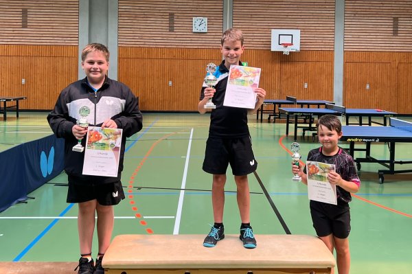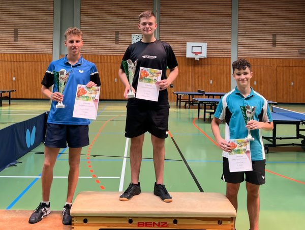 Siegerehrung der Jugend: v.l. Jonas Hänle, Matthias Albers, David Martini Bei den Aktiven wurde dieses Jahr eine Konkurrenz mit 24 Teilnehmern gespielt. Am Ende des Tages standen sich hierbei Oliver Sierpek und Mathias Schwab im Finale gegenüber. Nach fünf Sätzen konnte sich letztendlich Mathias den Sieg erkämpfen und sich somit zum diesjährigen Vereinsmeister küren. Die Vereinsmeisterschaften waren eine gelungene Veranstaltung, bei der das leibliche Wohl nicht zu kurz kam und eine tolle Gelegenheit, um während der Sommerpause gemeinsam zusammenzusitzen. |